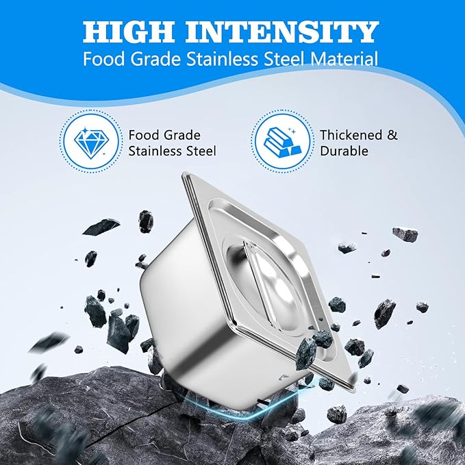 Upgrade your food service setup with this 6-Pack Stainless Steel Steam Hotel Pan Set, designed for professional kitchens, catering events, restaurants, and buffet stations. Each pan is 1/6 size and 4 inches deep, offering the perfect capacity for storing, heating, and serving a wide variety of foods including meats, vegetables, sauces, sides, and desserts.